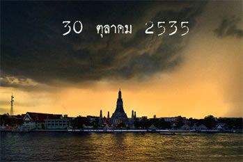 "ก็ หน้าฝนตอนที่ผม.....เอ่อ.... พี่ เรียกตัวเองว่าพี่แล้วกัน.... ตอนที่พี่เด็ก ๆ ตอนนั้นจำได้ว่าเดือนตุลาคม ฝนตกทั่วทั้งเมือง ตกติดกันอยู่สองสามวัน แม่ร้องไห้ตลอด พ่อก็คอยปลอบใจ ธรรมดาแม่ไม่เคยร้องไห้"
