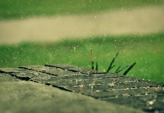 สายตาของเขามองกวาดไปยังพื้นที่โล่งด้านหน้า ฝนโปรยลงมากระทบพื้นทั่วบริเวณ